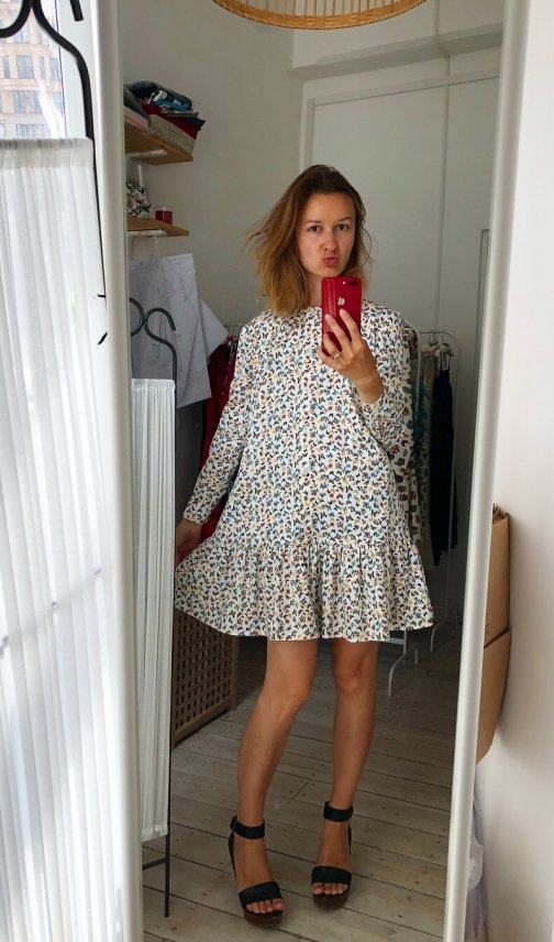 Великолепное лёгкое платье отлично подойдёт для жаркой погоды. Длинные рукава защищают руки от солнца. Широкие карманы поднимают настроение - книга не влезет, но телефон и ключи точно)