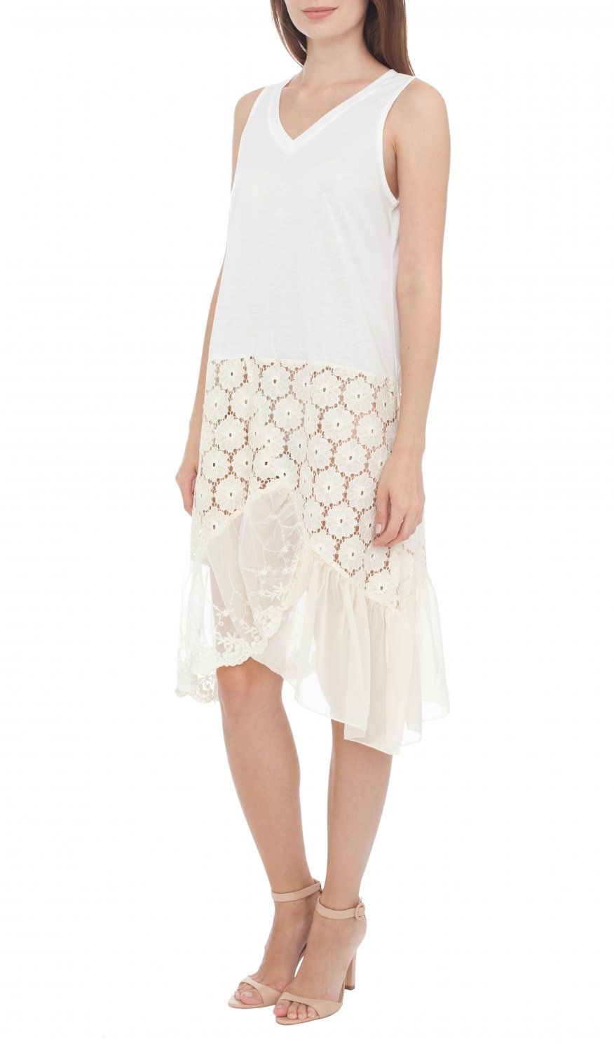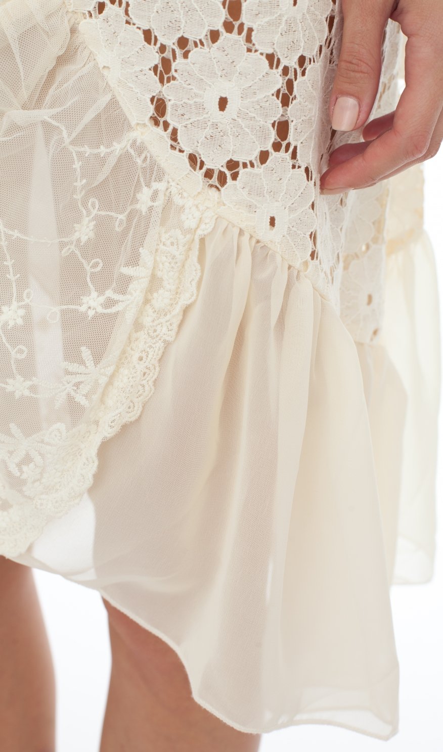 Это платье отлично подходит под платья/туники - кружево очаровательно выглядывает из-под подола, либо создаёт дополнительный объём юбке. Кружево просвечивает, поэтому самостоятельно можно носить на пляже с купальником.