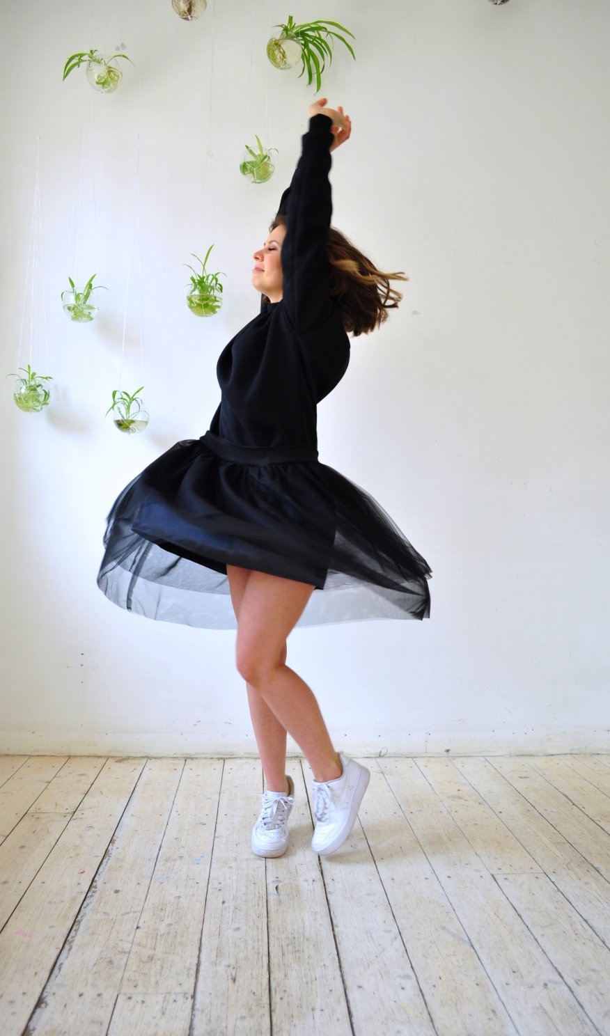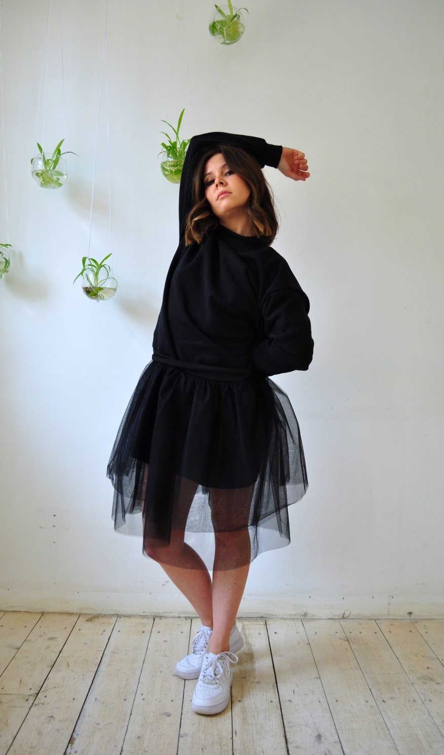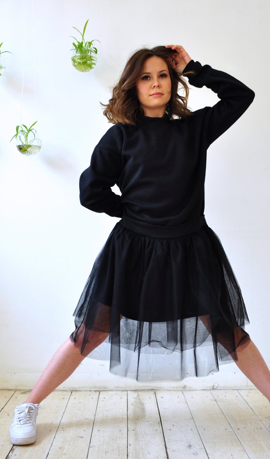 Флисовое платье, очень приятное к телу, тёплое. Юбка из органзы. На рост до 160 см, либо носить как тунику с леггинсами или джинсами.