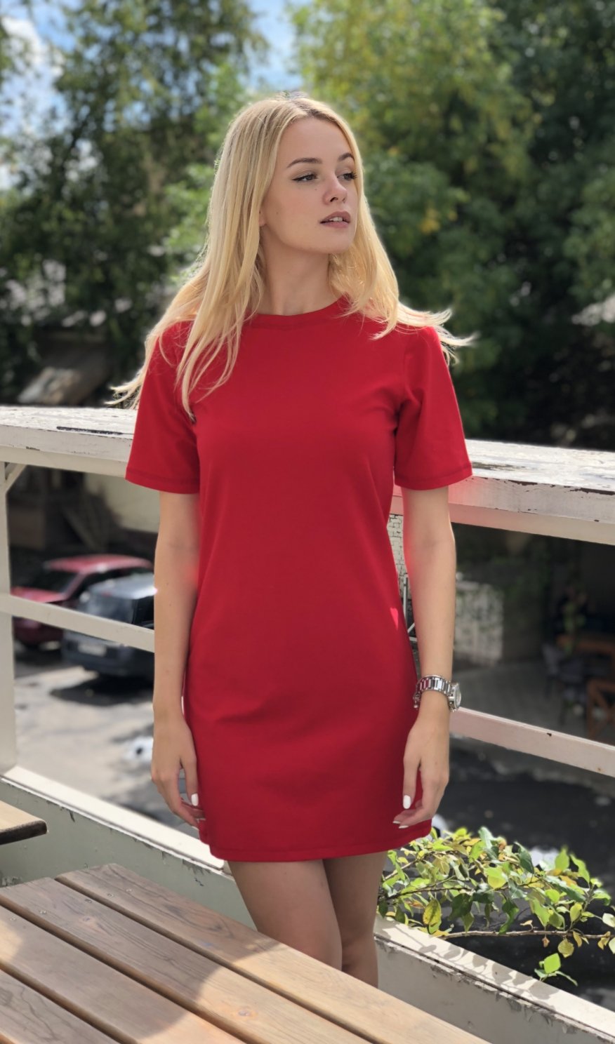 Платье-футболка Add to wishlist Размер S 3 000 ₽ 1 000 ₽ Платье-футболка красного цвета. Хлопок. Размер 42-44. плечи 39 см подмышки 44 см длина 85 см