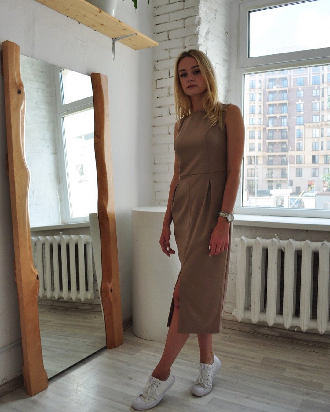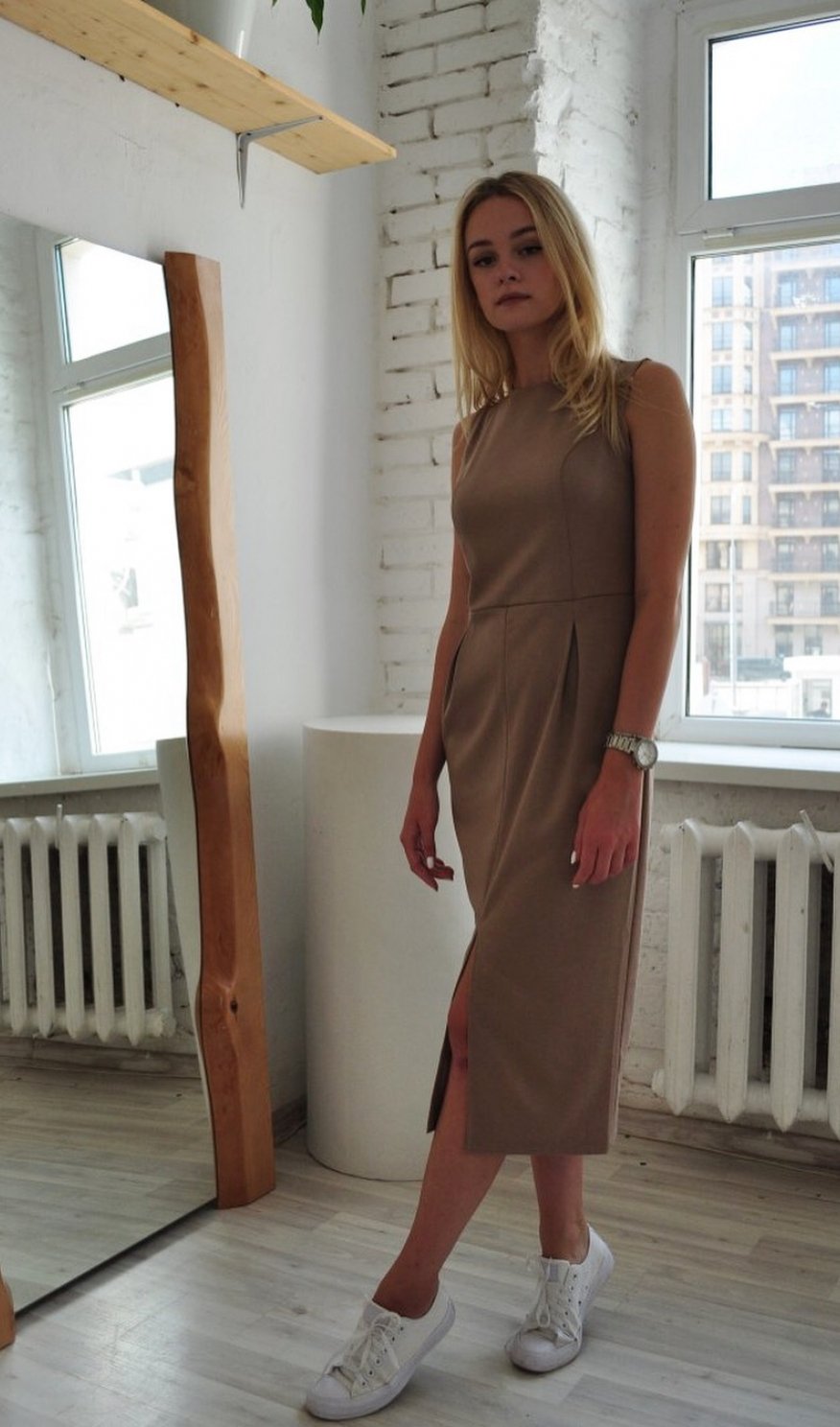 Бежевое платье Add to wishlist Размер M 3 500 ₽ 2 000 ₽ Шикарное бежевое платье с вырезом. На размер 44. подмышки 43 см талия 36,5 (73) см (тянется) длина 115 см