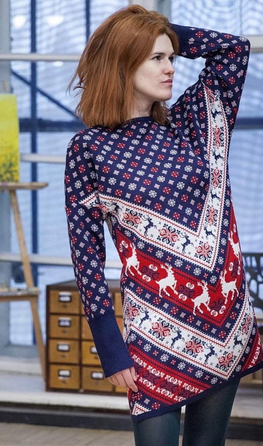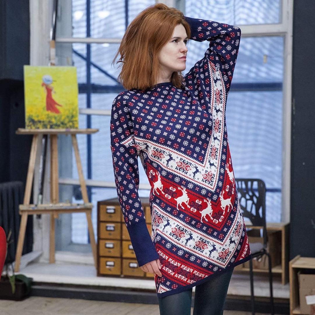 Чудесное платье-туника из полушерсти с принтом "Олени" создано эксклюзивно для Бохо Бара. Лимитированная коллекция!