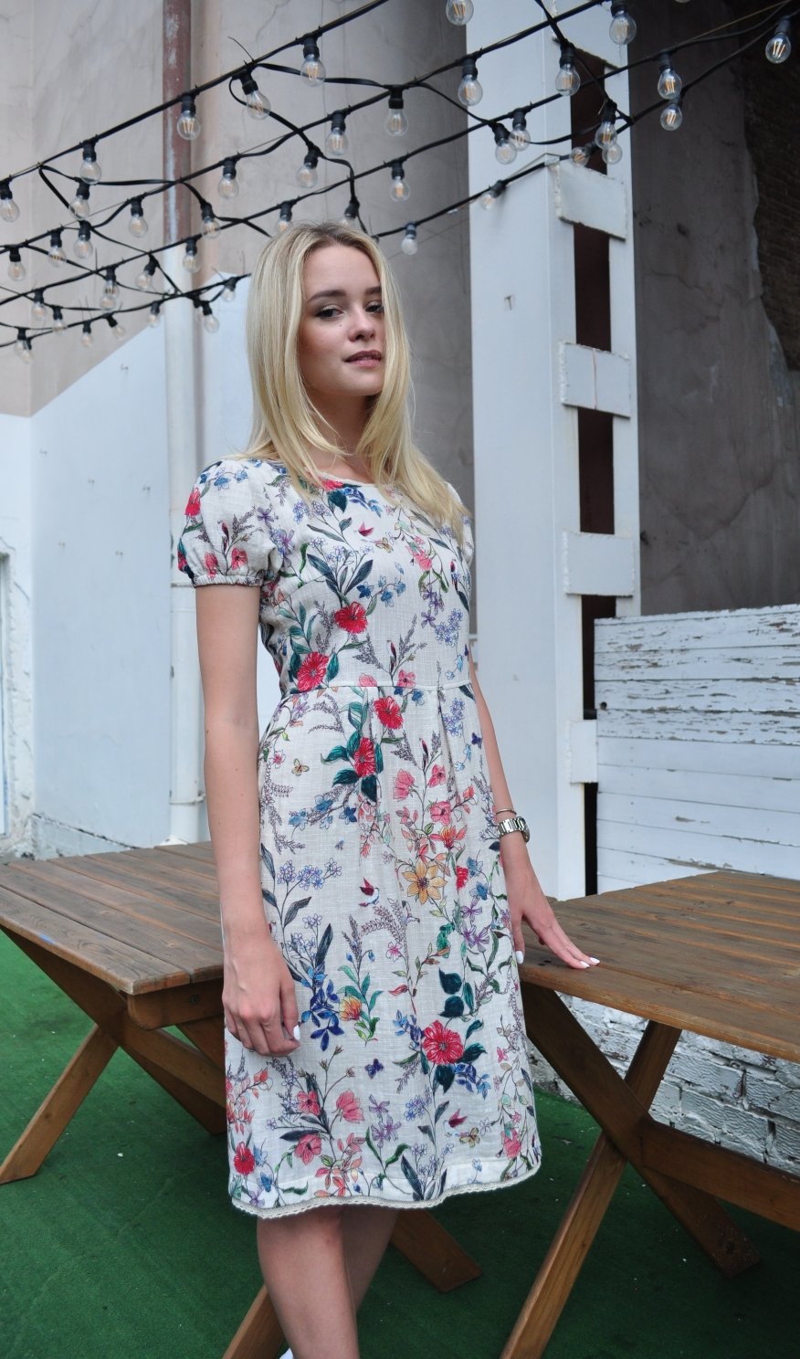 Очаровательное платье из смеси хлопка и льна вызовет у вас бурю приятных эмоций - это любовь с первого прикосновения, с первого взгляда и первой пуговицы.