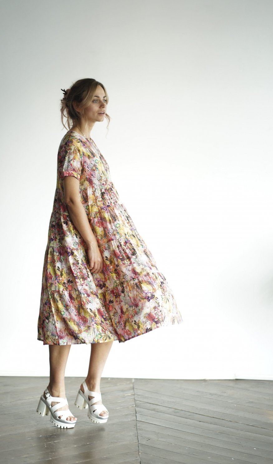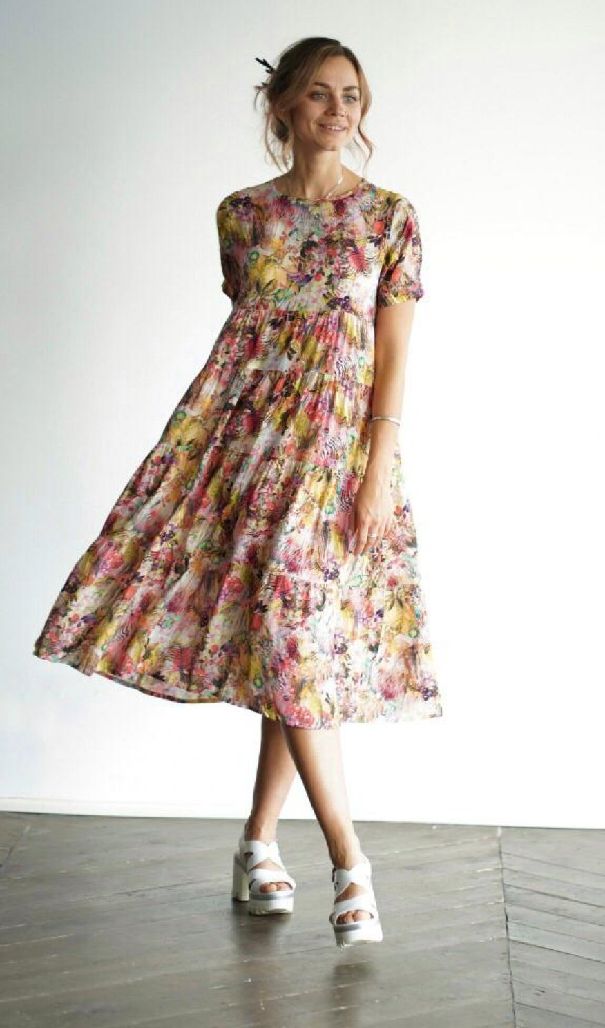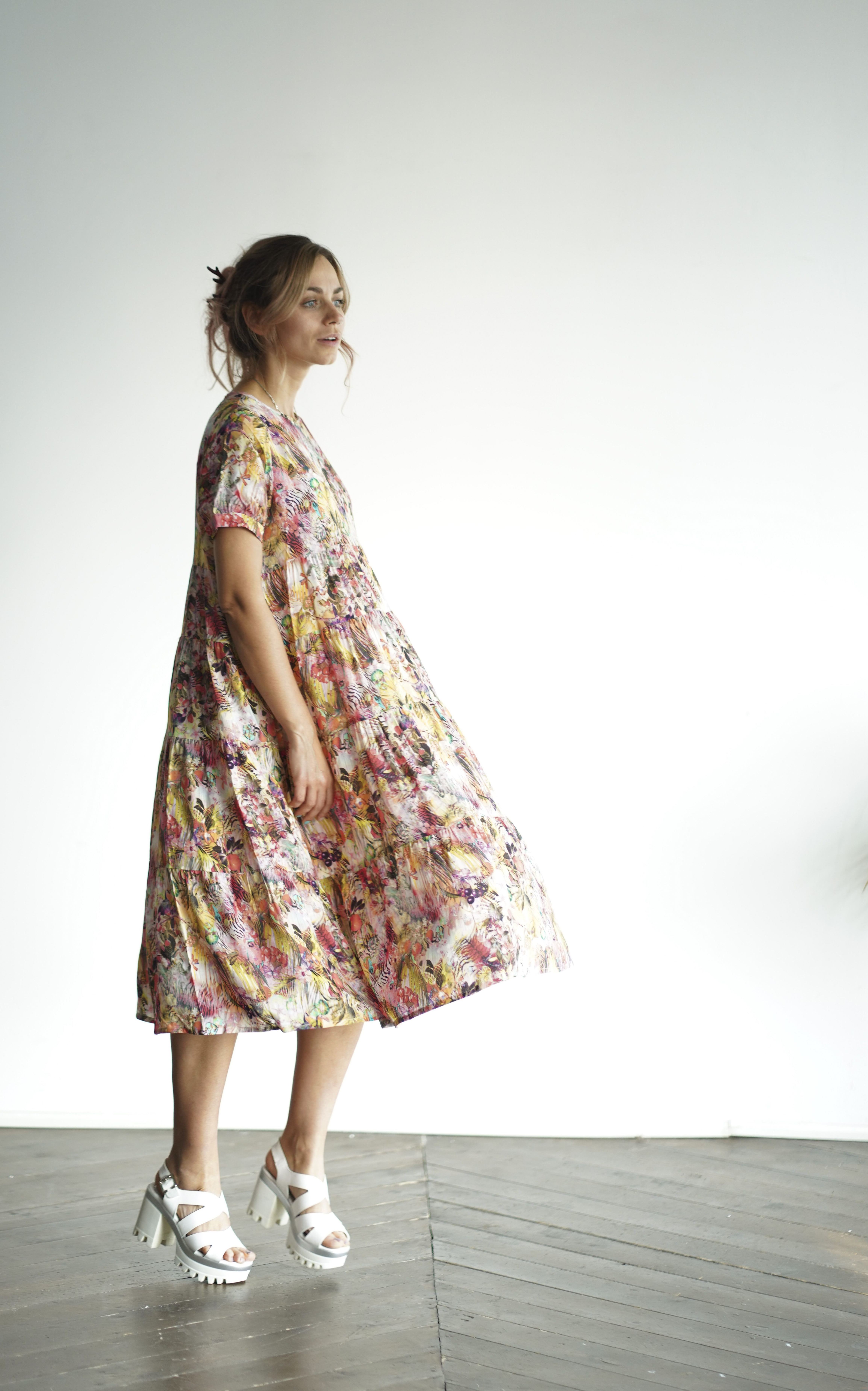 Летящее платье Add to wishlist Размер S M 3 900 ₽ 3 500 ₽ Потрясающее невесомое платье с воланами из качественной вискозы - не жарко и не холодно весной-летом. Размер 42-44