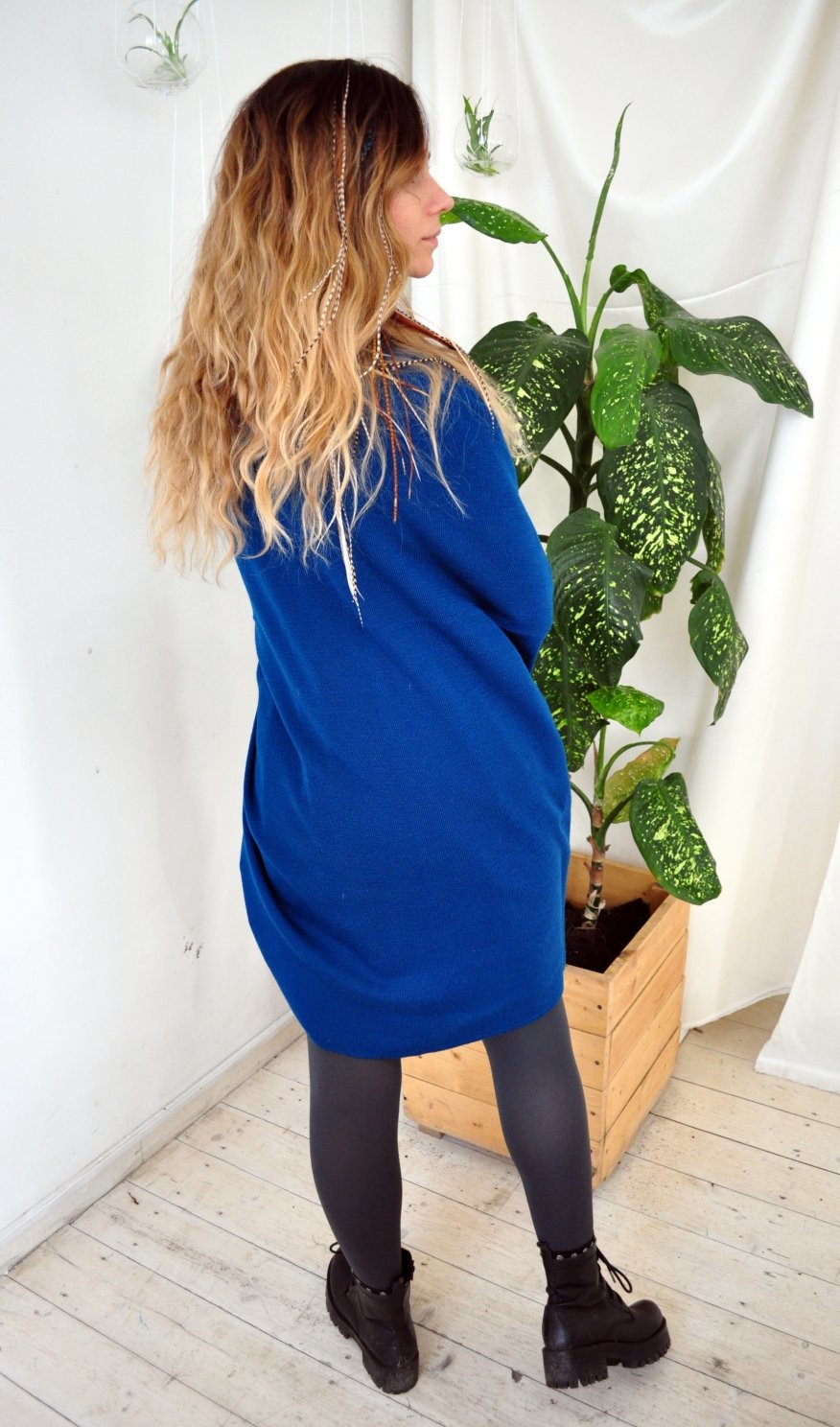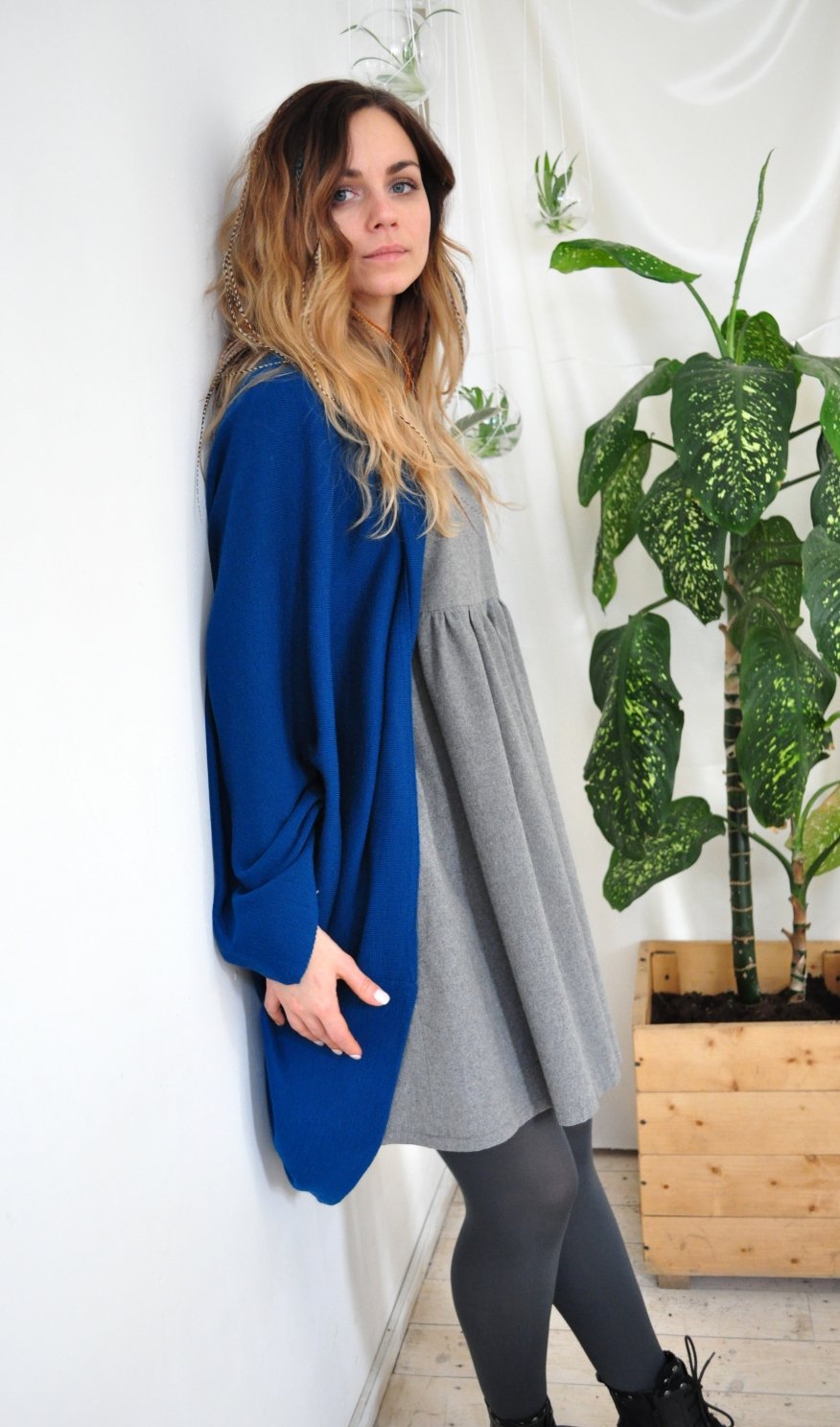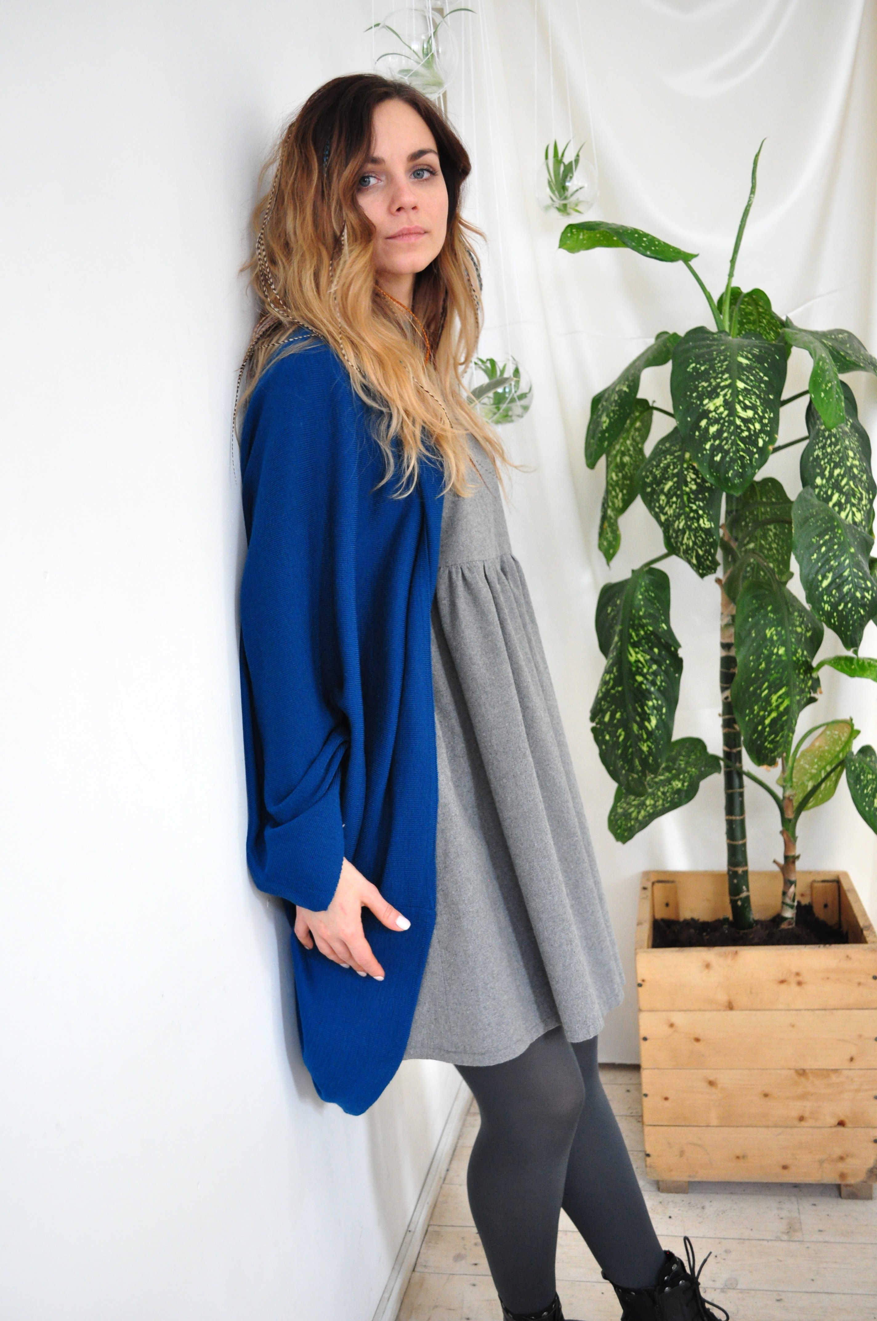 Это пончо подходит всем без исключения типам фигур. Оно хитро одевается на руки, а при желании даже и на голову. В нём уютно работать за ноутбуком, пить горячий чай, есть печеньки, ходить в кино, прогуливаться по набережной, проветривать собаку и даже ходить в картинную галерею.