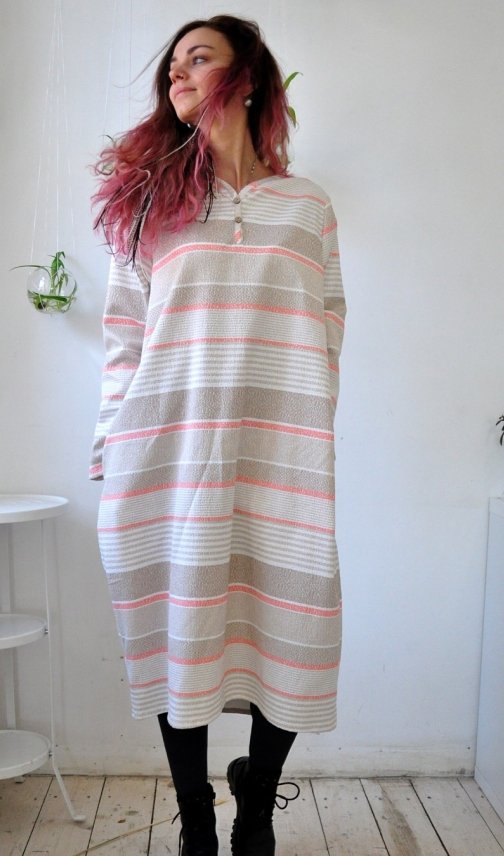 Универсальное оверсайз платье-мешок с карманами. Ткань: лён.