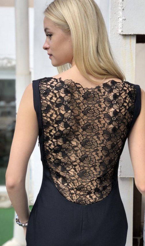 Потрясающе элегантное платье с кружевом на спине. Молния сбоку. На размер 44.