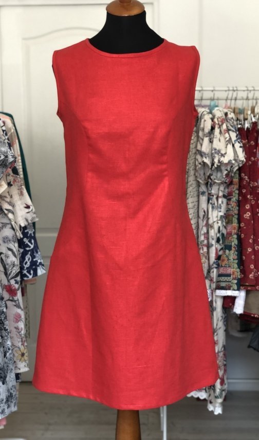 Классическое маленькое платье из красного льна на молнии сзади. Размер 46.