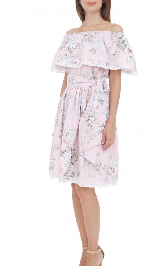 Милое платье в стиле шебби с воланом на груди и поясом на талии подойдёт как для коктейльной вечеринки, так и для романтического свидания.