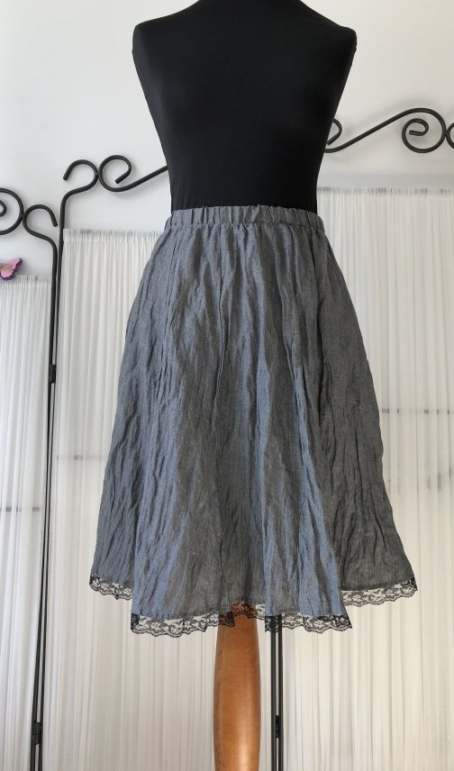 1. жатый лён серый с карманами, чёрное кружево