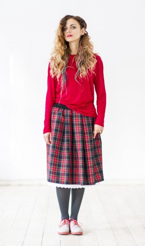 Струящаяся юбка-шотландка вызывает восторг владелицы и окружающих - легка в уходе, хорошо сидит, стройнит и очаровывает.